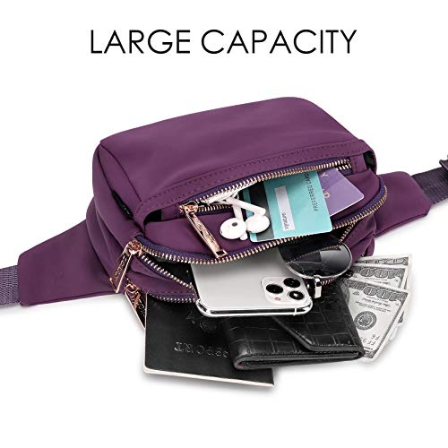 【LARGE CAPACITY, MULTIPLE POCKETS】ZORFIN plus size fanny packs for women fashionable with 4 large pockets for your phones, wallet, keys, passport, sunglasses, cosmetics, lipstick, tissue, earphone and other small items, Provides spacious storage and Help keep your stuff neat and organized; 6 slots for storing your credit card, membership card and passport etc; 1 small hidden compartment inside the main pocket to Keep Your Valuables Away From the Thieves.